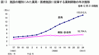 薬剤師の基本情報薬剤師の施設別人口推移 薬剤師の人口推移を施設別に付いてご紹介します。 まず平成24年度時点での薬剤師の人口推移は約280000人。 内、男性が109000人、女性が170000人です。 薬剤師の人口は前回の調査時よりも増加傾向になるようです...薬剤師の基本情報